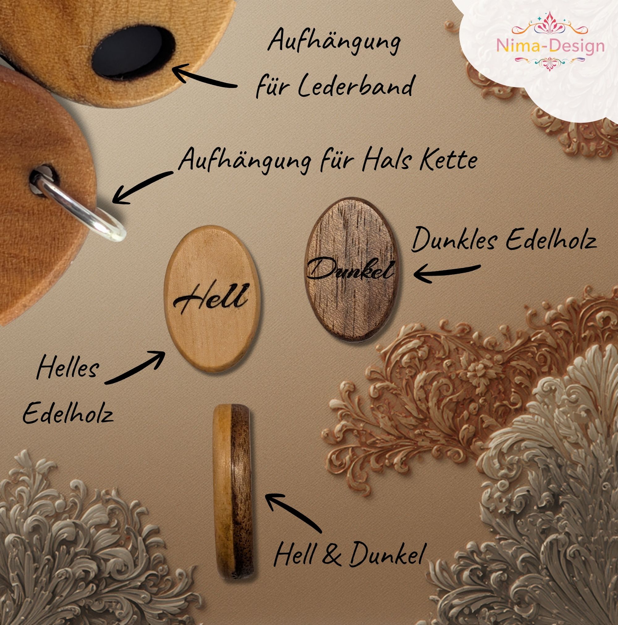 Aufhängung: Wir bereiten dein Unikat wahlweise für eine elegante Halskette oder ein rustikales Lederhalsband vor.